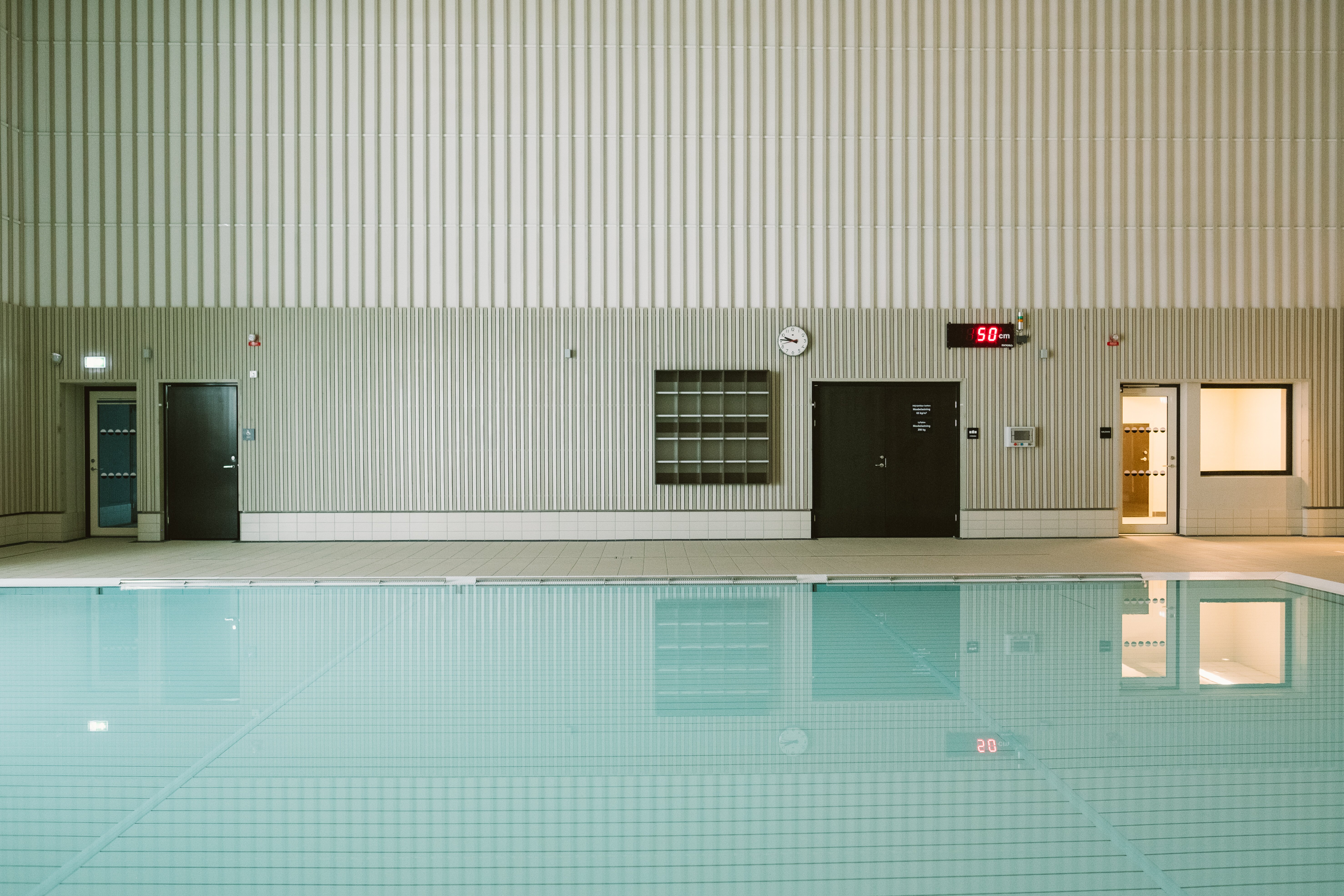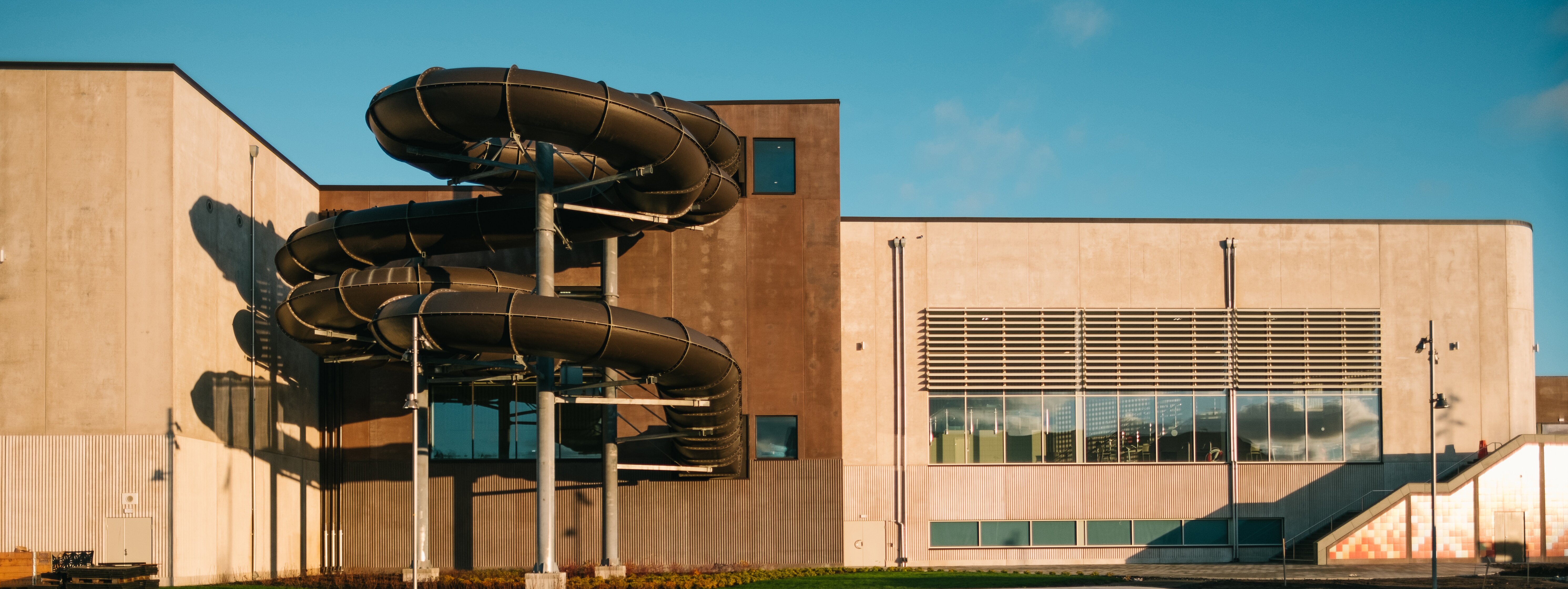 50-metersbassäng med 10 banor, familjebad med rutschkana, dubbla undervisningsbassänger med höj- och sänkbara bottnar, relaxavdelning samt gym och café.