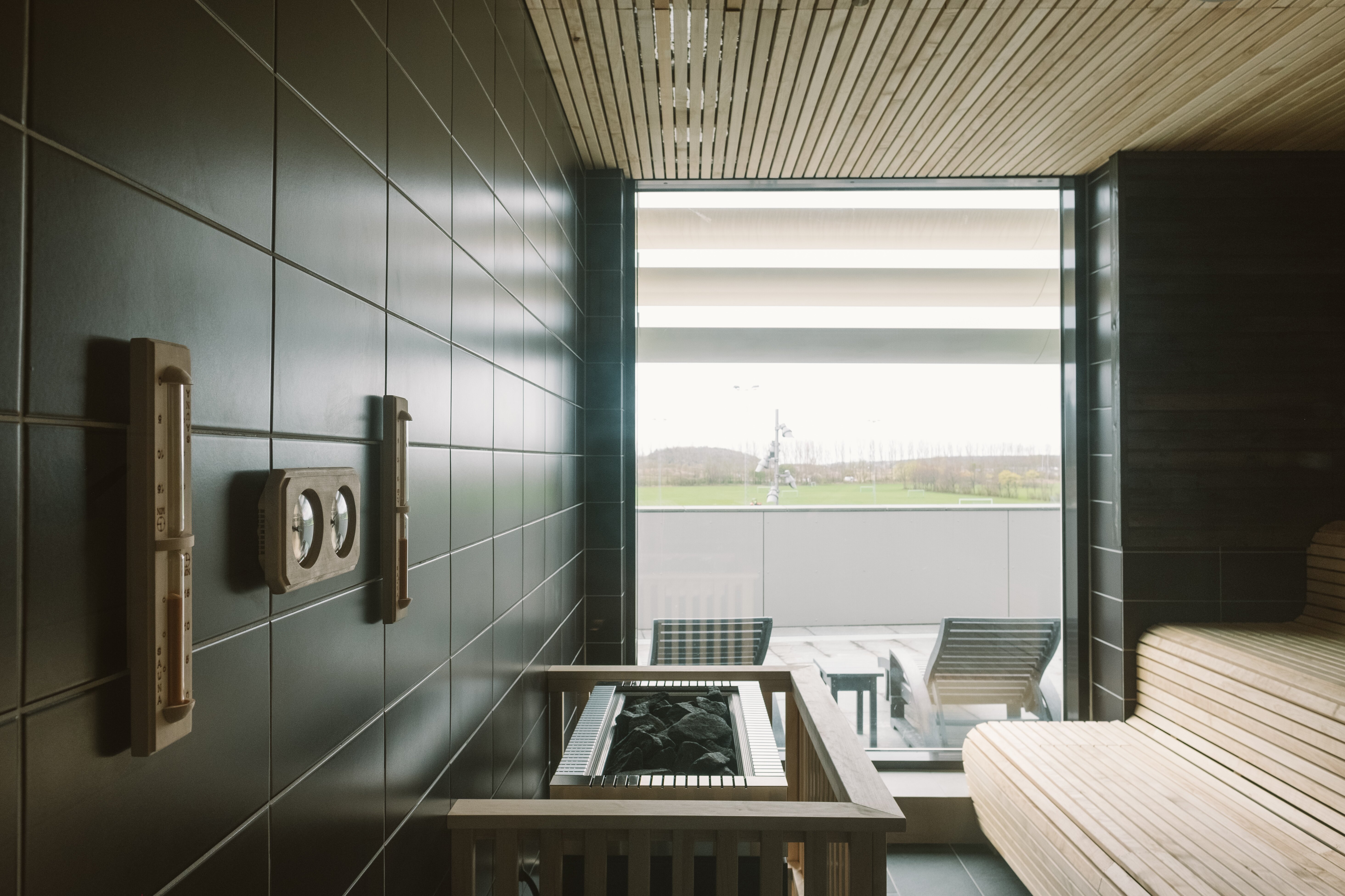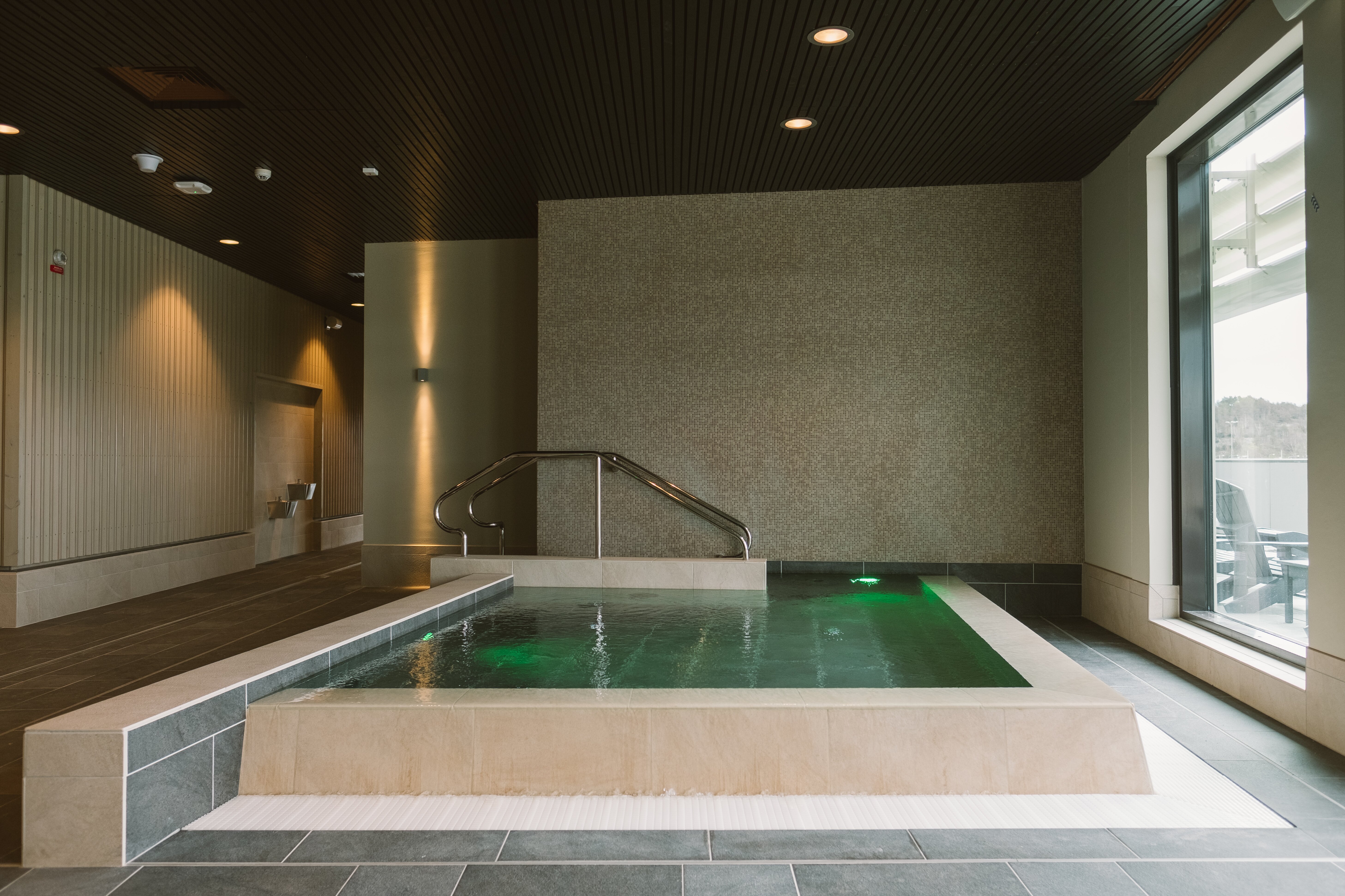 Relaxavdelning med kallbad och bastu: