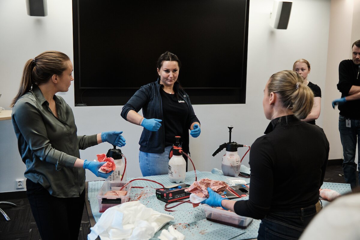 Deltagarna fick bland annat träna på hjärt-lungräddning, stoppa blödningar och hantera akuta situationer som kan uppstå på en byggarbetsplats.