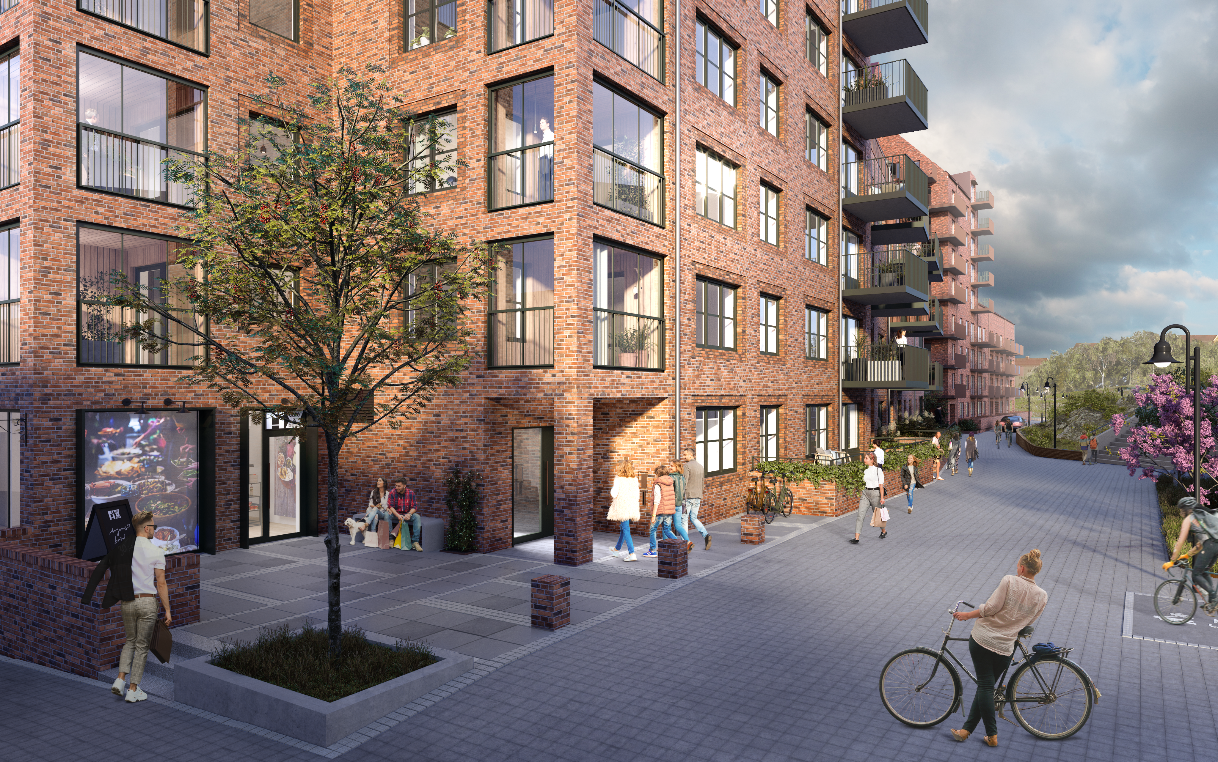 Glasbruket i Majorna omfattar 136 bostadsrättslägenheter med innergård.
