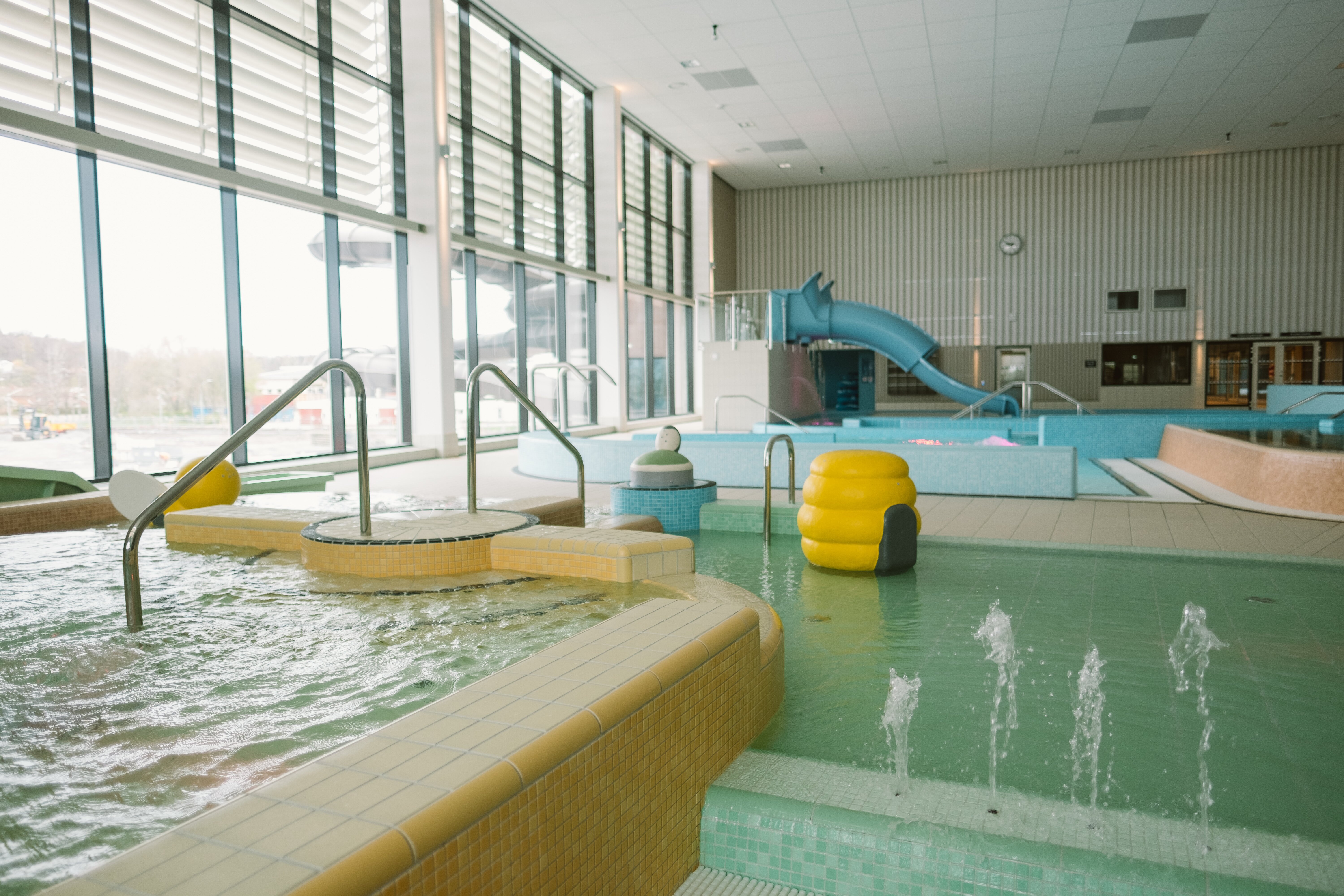 Två undervisningsbassänger med höj- och sänkbara golv gör det möjligt att justera djupet från 0 meter till fullt djup. Övriga bassänger är förberedda för att sätta i mobila personlyft. Hela badhuset är rullstolsvänligt.
