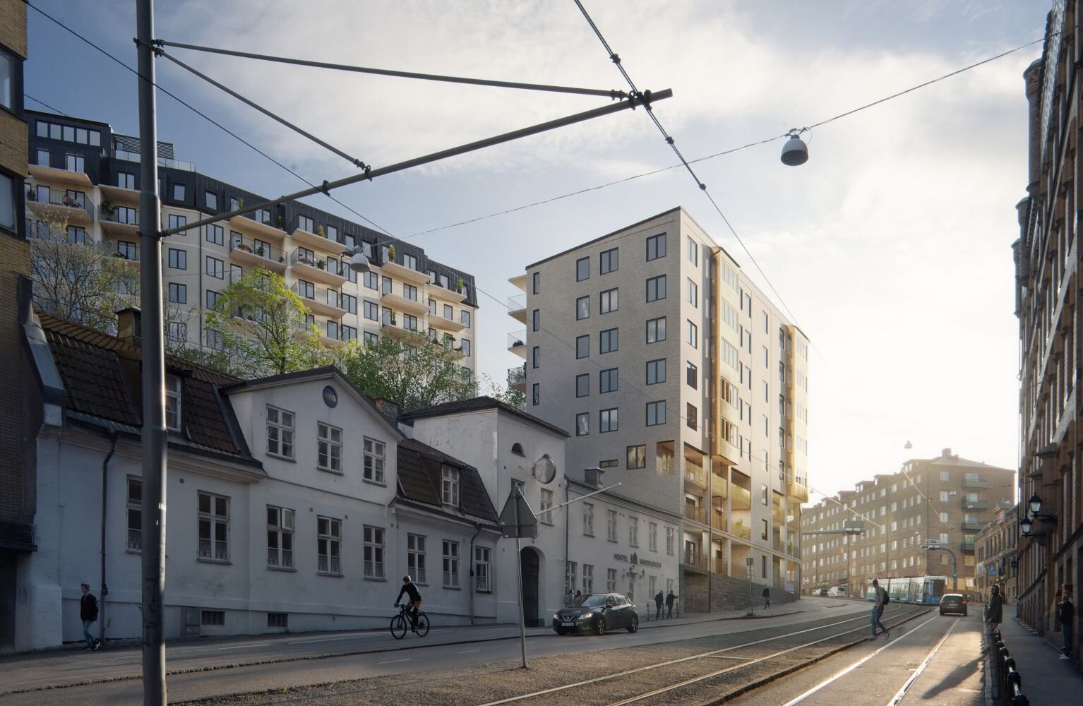 Bostadsprojektet Stigbergshyllan ligger på en brant bergssluttning, ett stenkast från Masthuggskajen där en helt ny stadsdel tar form nära vattnet.