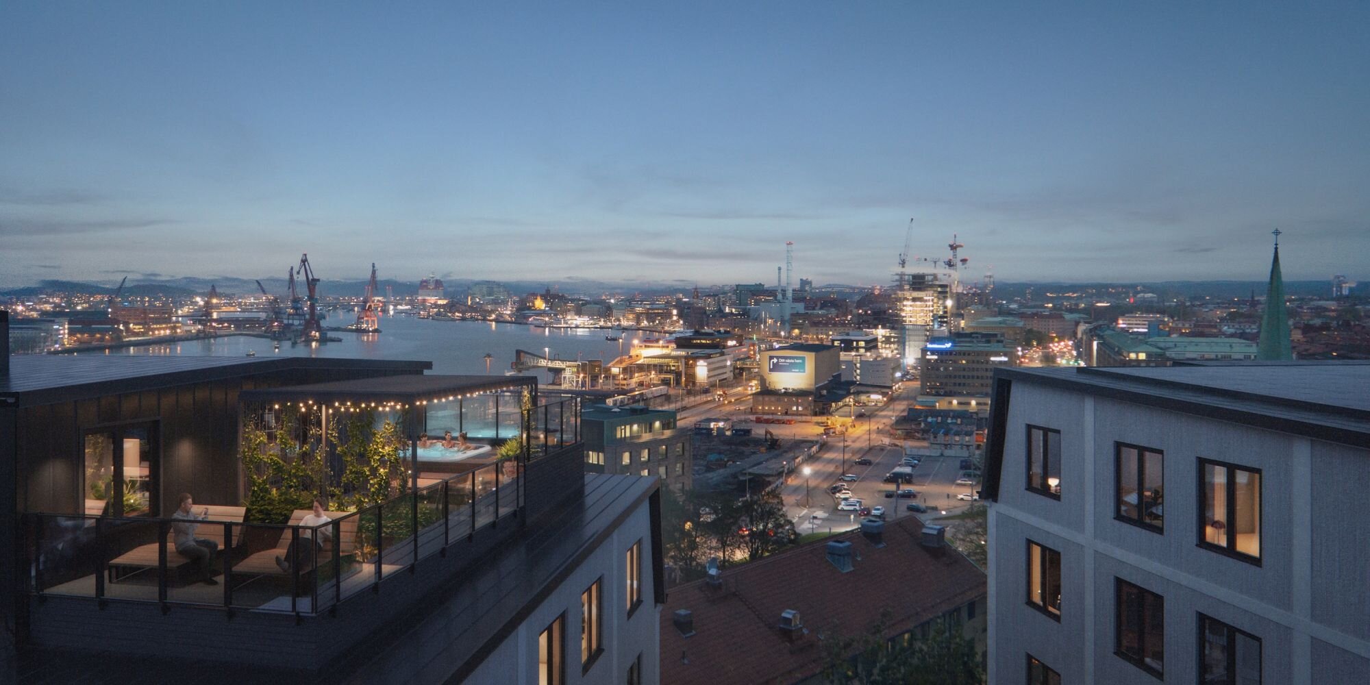 187 lägenheter i varierande storlek, från ett till sex rum och kök samt gemensam takterrass med vidsträckt utsikt över Göteborgs hamn. Totalt rör det sig om tre huskroppar om 9 våningar med fasader i gult tegel och ljusmålad betong. Totalyta är cirka 16 000 kvadratmeter.
